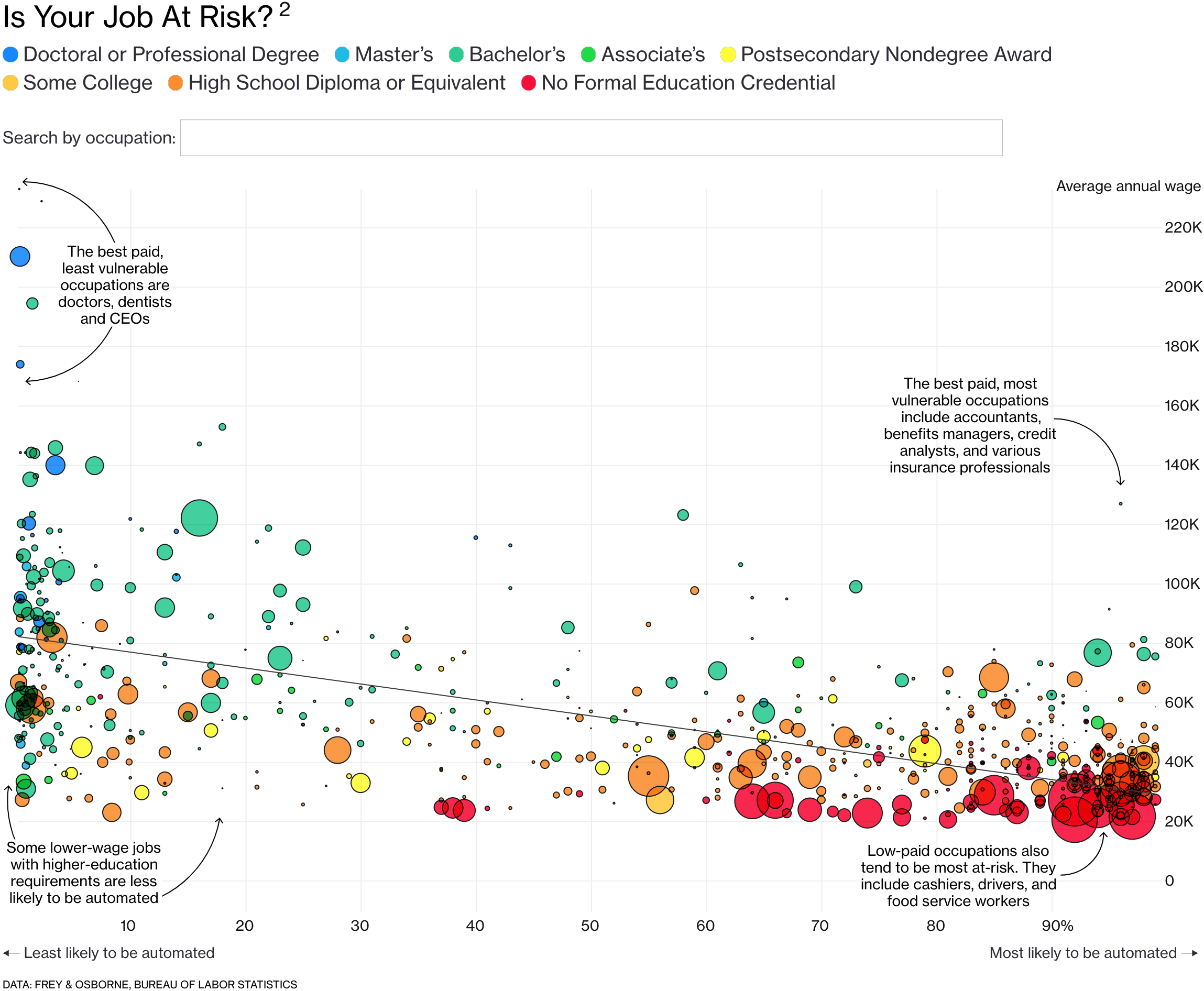 A look at manufacturing vs service job losses in the U.S. and which industries are most at risk to automation.